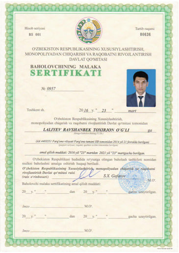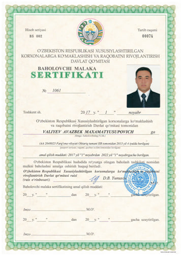 Мы предоставляем широкий спектр услуг в сфере оценки и консалтинга для физических лиц и бизнеса. Отчёты соответствуют требованиям законодательства Республики Узбекистан и национального стандарта оценки.